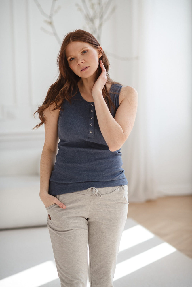Тениска за бременни и кърмачки Milk&Love jeans със сини райета с презрамки