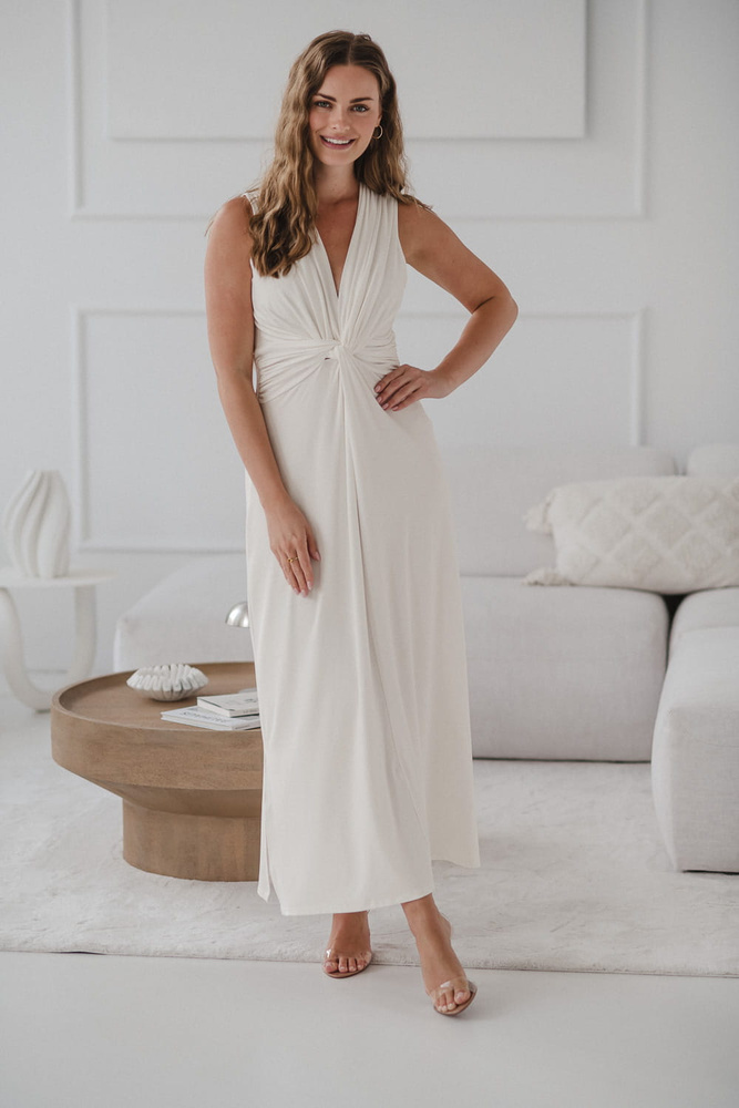 Макси рокля за бременни и кърмачки с принт Milk&Love крем