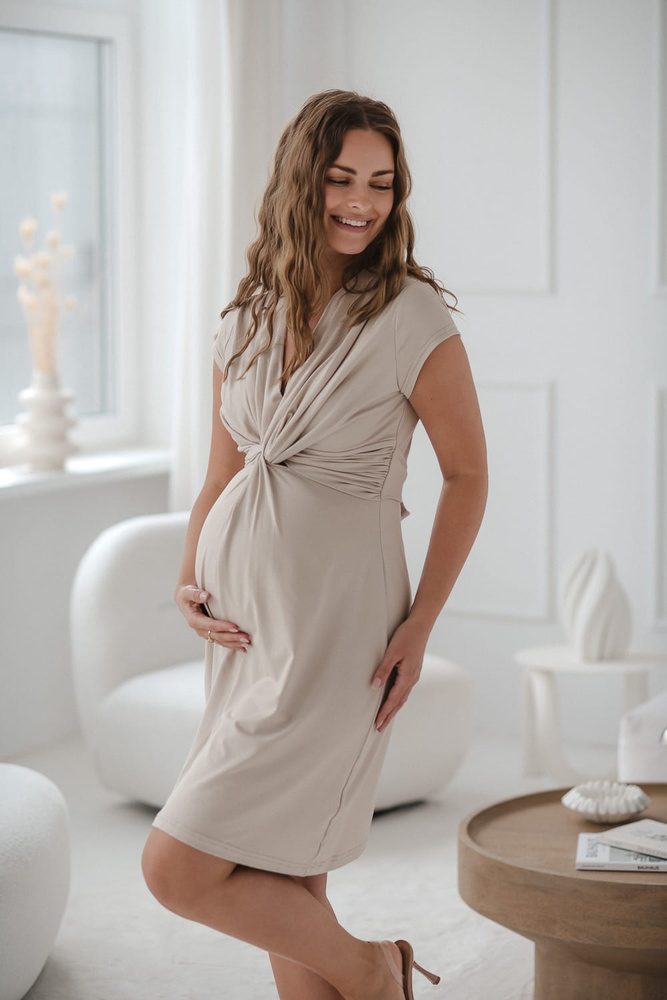 Loop рокля за бременни и кърмачки, къс ръкав, Milk&Love, светло бежова