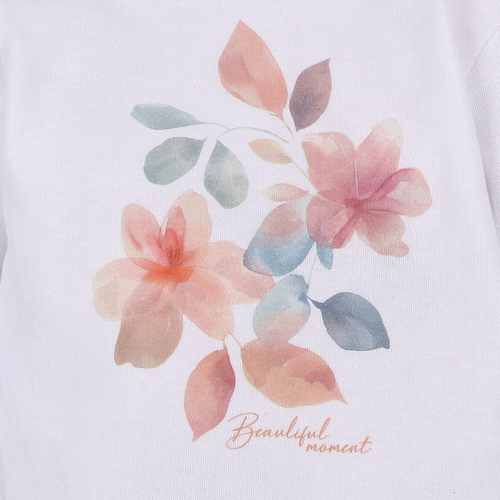 ABN-5416 Kolorowe kwiatki Body z bawełny organicznej Nini biały