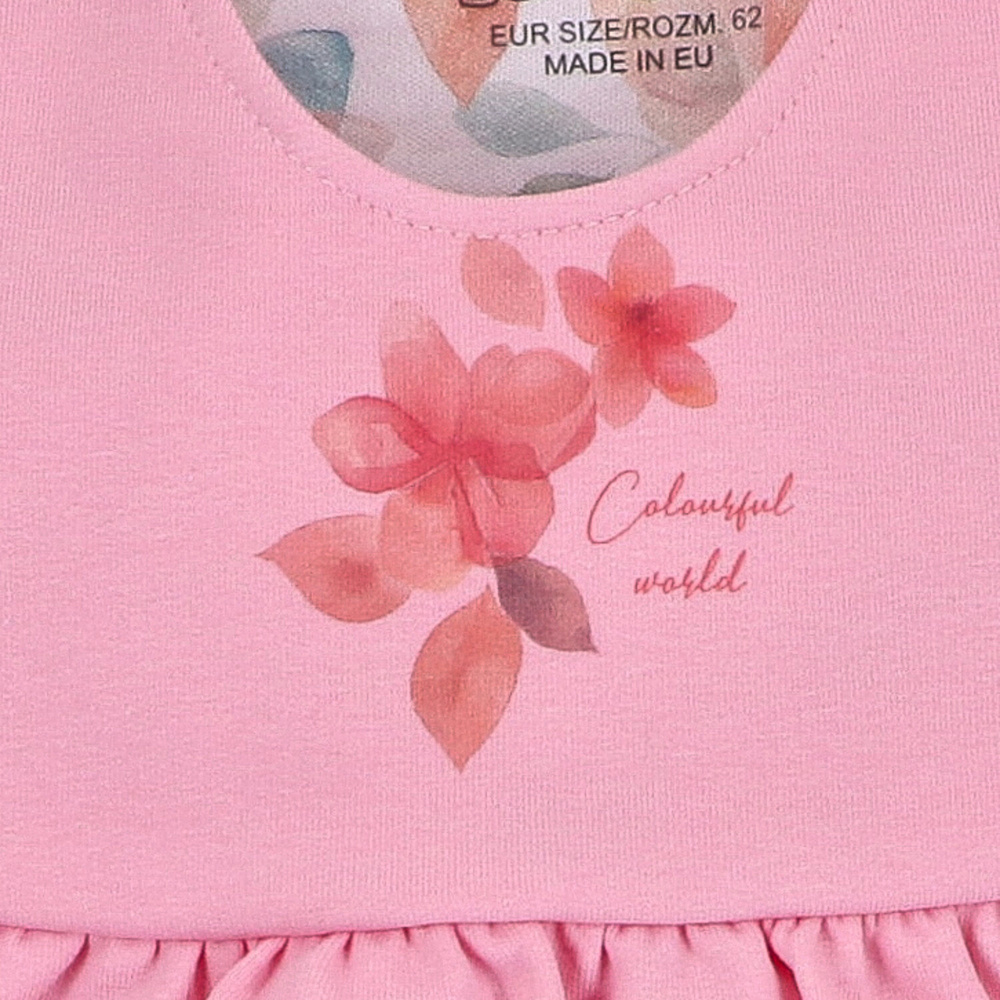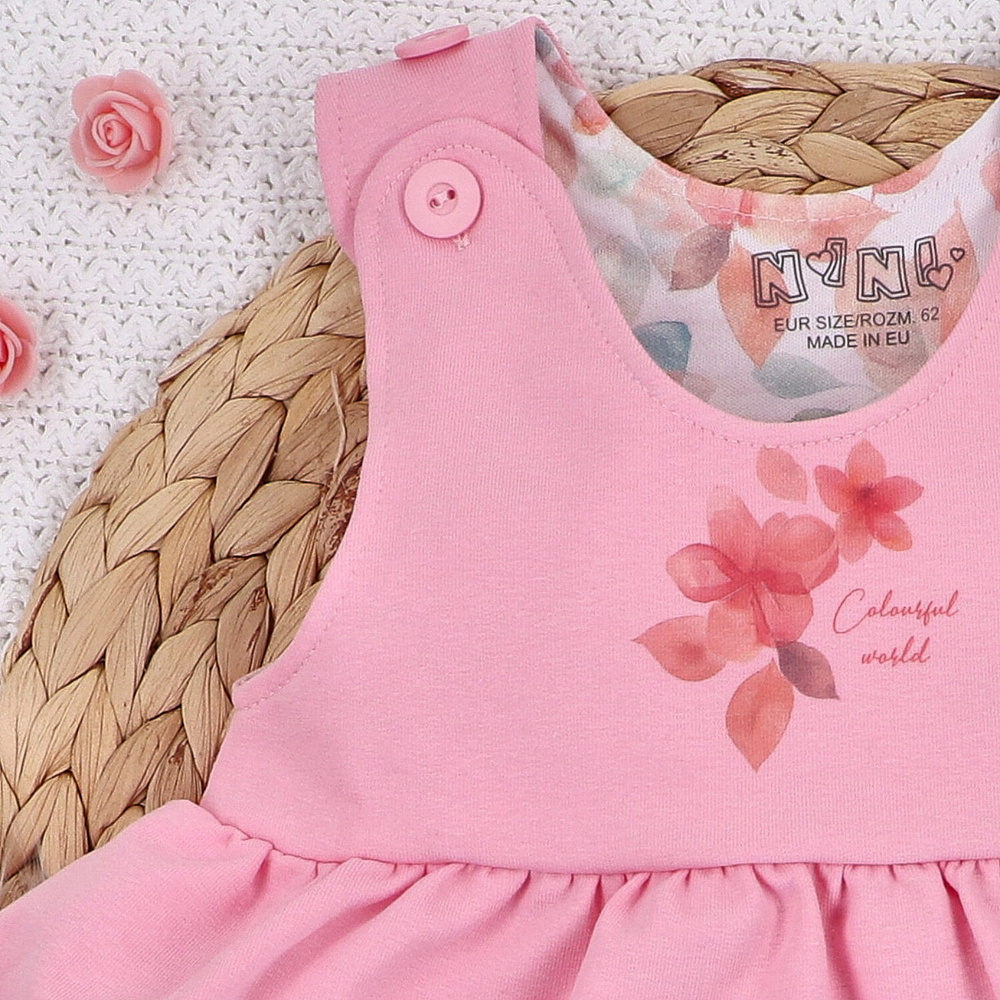 ABN-5427 Kolorowe kwiatki Sukienka z bawełny organicznej Nini różowy