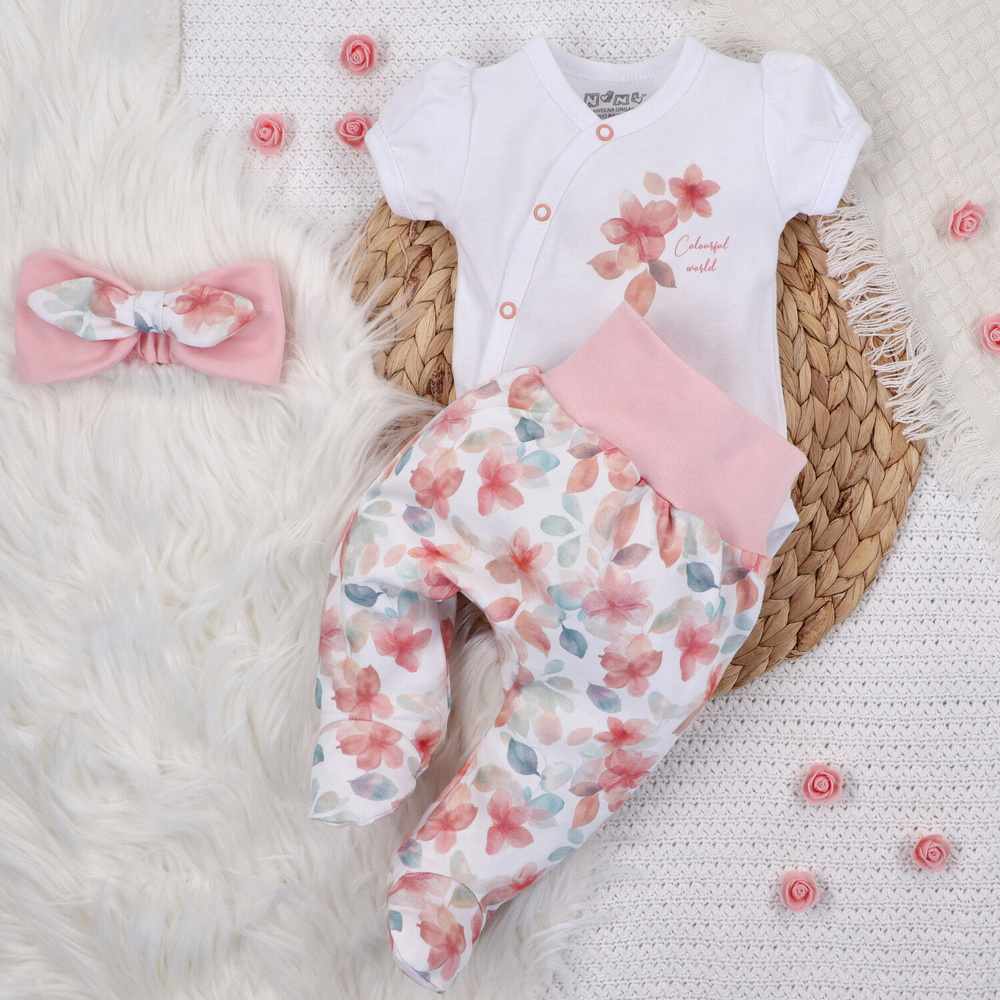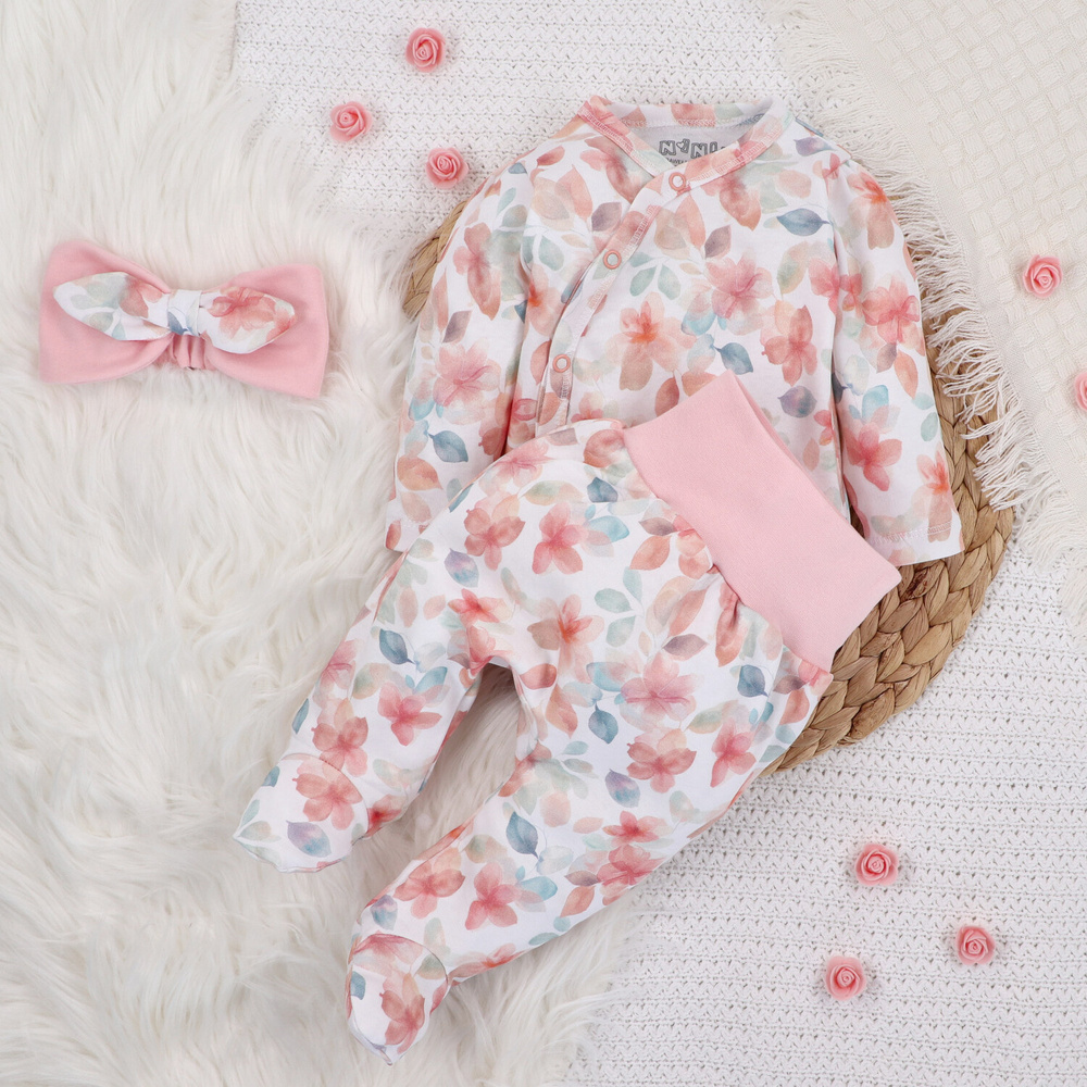 ABN-5432 Kolorowe kwiatki opaska z bawełny organicznej Nini