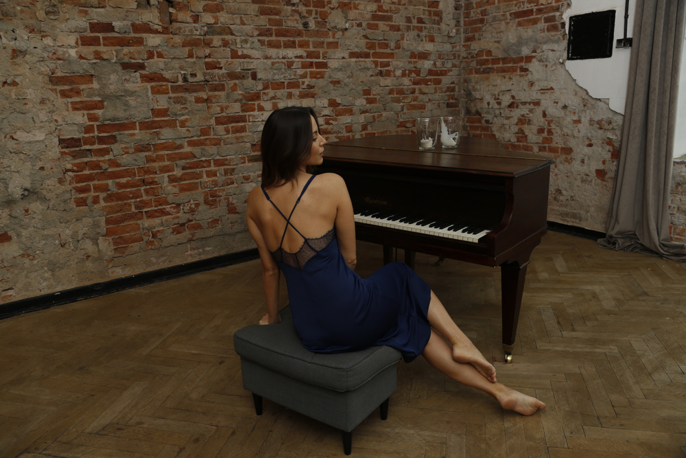 Ризата, вдъхновена от френския стил, впечатлява с добре обмислената си "кръгова" конструкция - благодарение на това долната част се издува леко и естествено, създавайки красив силует при всяко движение. Изработена от вискозна коприна VISTEX®, тя нежно обгръща тялото, осигурявайки не само луксозен вид, но и комфорт и безопасност за кожата. Фината дантела с мигли на деколтето придава чувственост, подчертавайки наситения нюанс на тъмносиньото. Тънките презрамки се кръстосват на гърба, създавайки ефектен детайл