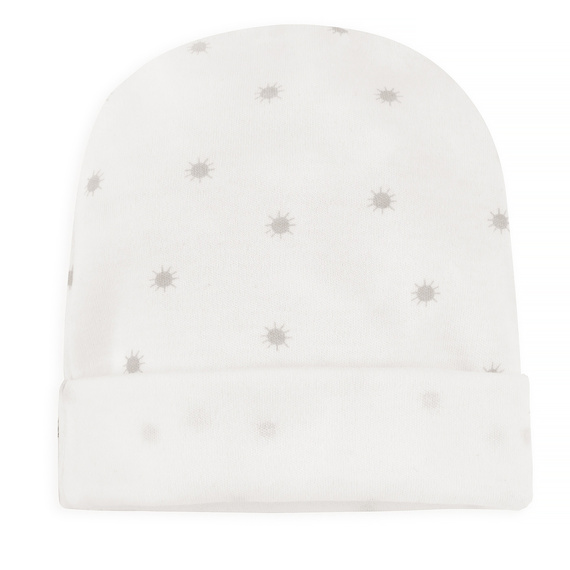 Бебешка шапка, тънка, дълбока, еднослойна, изработена от 100% мек памук. Гъвкаво е и благодарение на пришитата плисе прилепва добре към главата на малкото дете, предпазвайки ушите от вятъра по време на разходка. Може да се използва и като шапка за баня. Когато попълвате layette за вашето дете, си струва да запомните за това. Капачката е произведена в Полша.