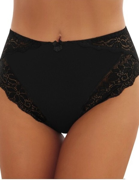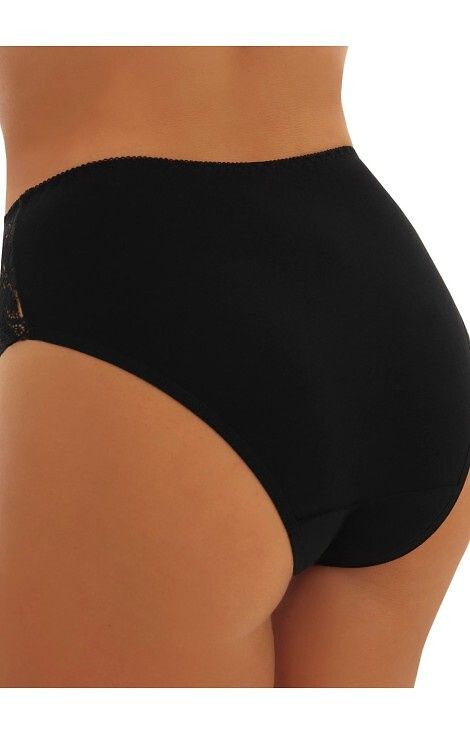 Затворени, високи дамски слипове. Изработена от гладък памук в комбинация с ажурна дантела