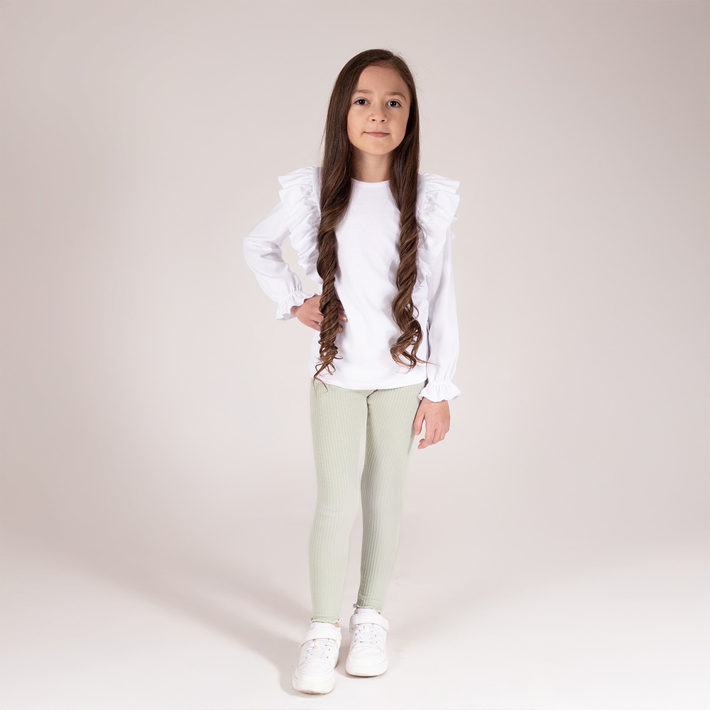 - Момичешки клин Никол от памук, рипсиран, с волани. Маслиненозелени, удобни, с ластик на талията. Произведено в Полша.