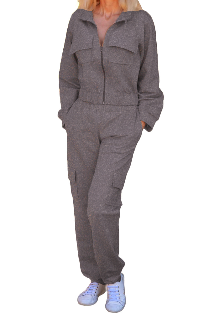 Запитване за продуктДамският анцуг Mili Mirale е уникален комплект, предназначен за жени, които ценят удобството и стила. Изработен от висококачествено памучно трико (95% памук, 5% еластан), осигурява пълна свобода на движение и идеално прилепване към фигурата. Суичър с цип с привличащи вниманието джобове на гърдите и карго панталони с големи странични джобове придават на всичко модерен, леко спортен характер. Еластичният колан на панталона подчертава талията, а удобните крачоли пасват идеално по крака.