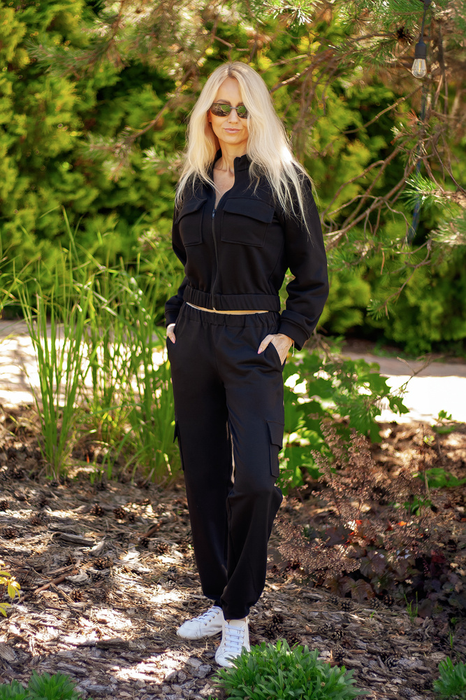 Памучен дамски анцуг Mili Mirale, удобен комплект с джобове - полско производство - черен