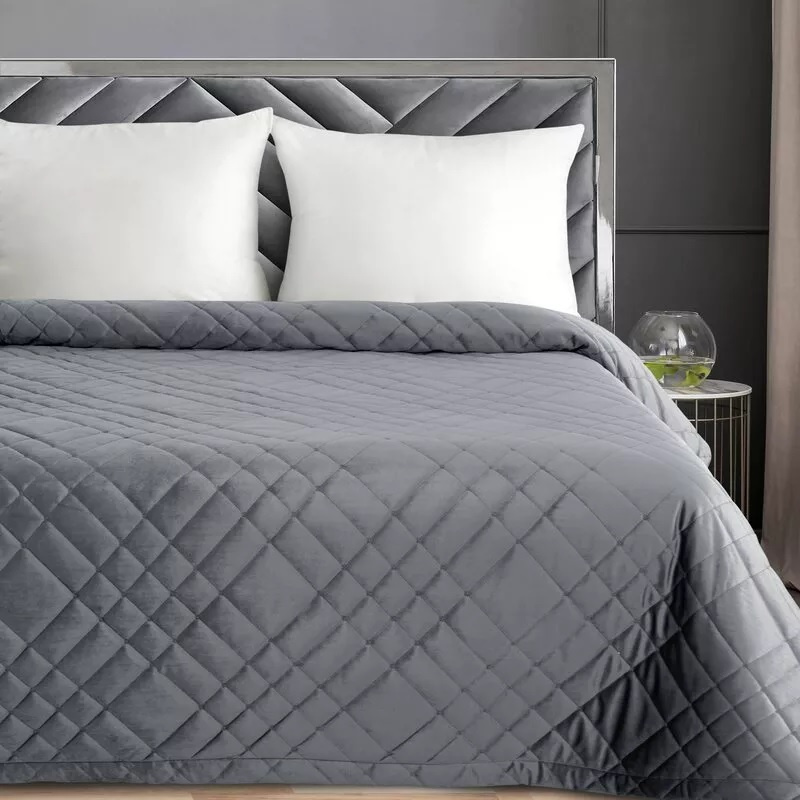 Придайте на интериора си класа и уникален характер с луксозно покривало Рия 6 от реномирана марка еврозавеси. Изработено от меко, приятно на допир кадифе, това покривало впечатлява с финия си блясък и внимателно капитониране, създавайки привлекателна декорация на леглото в бляскав или модерен стил.