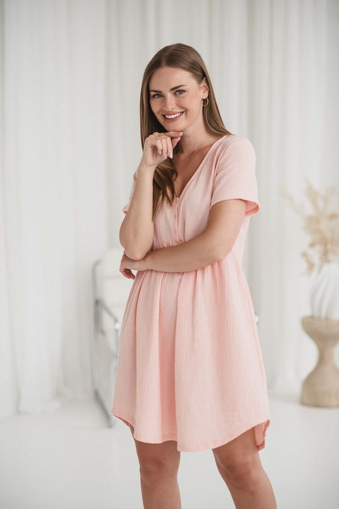 Муселинена нощница за бременни и кърмачки Aurora Milk&Love сьомга