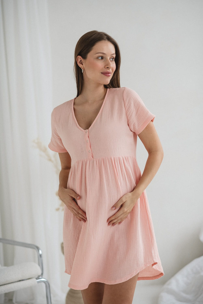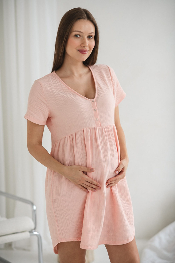 - Нощница за бременни и кърмачки. Изработен от дишащ, мек памучен муселин. Практичните закопчалки позволяват бърз достъп до гърдите.