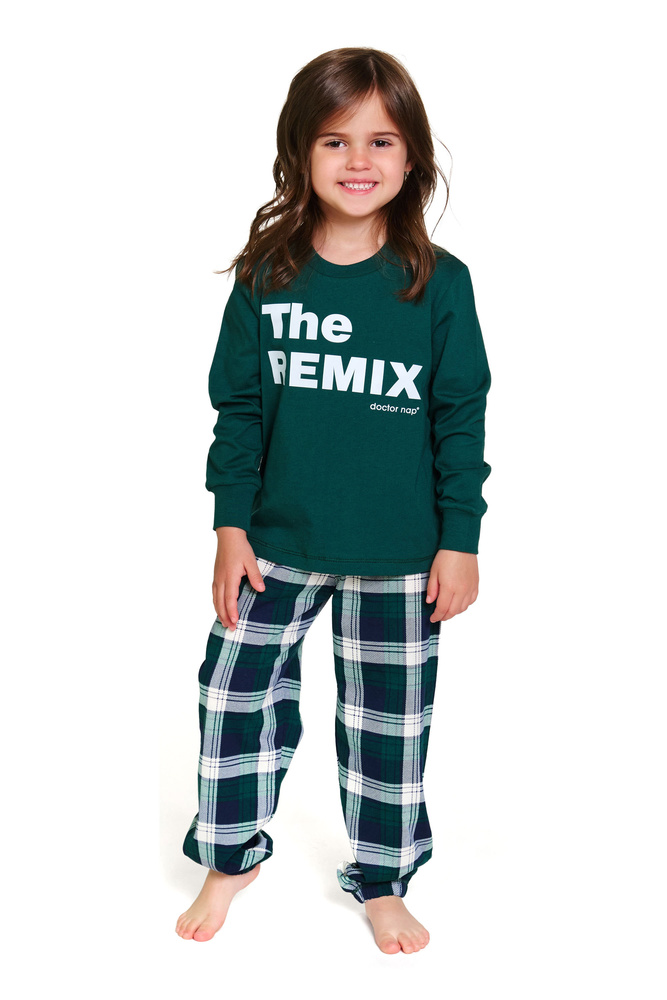 Унисекс детска пижама Doctor Nap 7342 е удобен и модерен комплект, подходящ за всеки сезон. Състои се от блуза с дълъг ръкав с щампа "The Remix" и класически панталон на каре с ластичен маншет. Пижамите са част от семейната колекция - можете да комбинирате еднакви модели за мама и татко, създавайки уникален семеен комплект за вечери заедно или снимки. Полското производство гарантира качество и издръжливост.