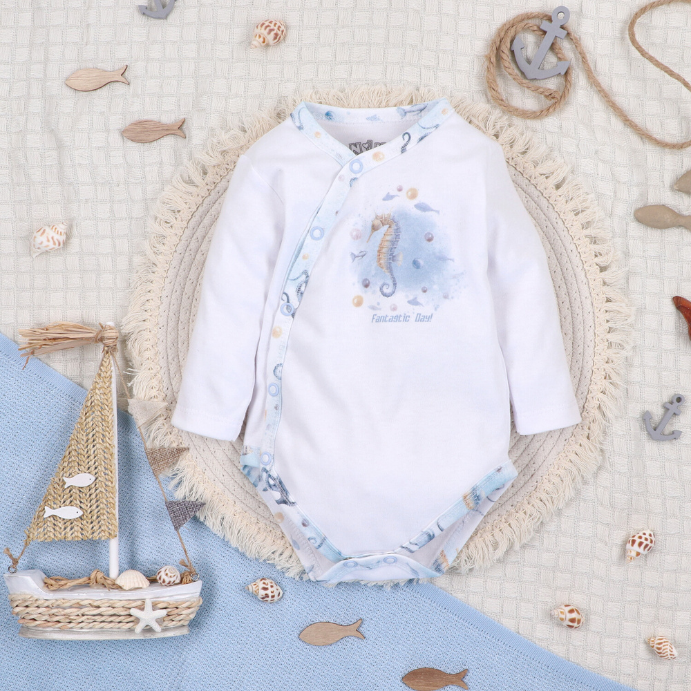 - SEA OF JOY Боди с плик Nini - органичен памук, нежен към кожата, удобно закопчаване с тиксо.