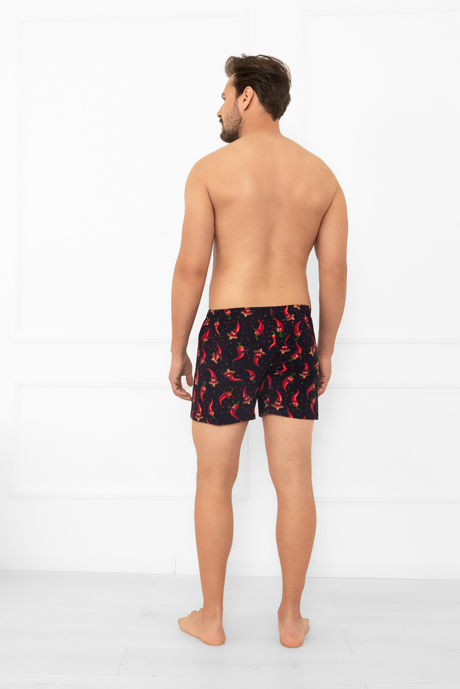 - Мъжки свободни боксерки от мек памук с мотиви на люти чушки. Широка еластична талия, която не се притиска, закопчаване с копчета и контрастно лого на Italian Fashion. 100% памук