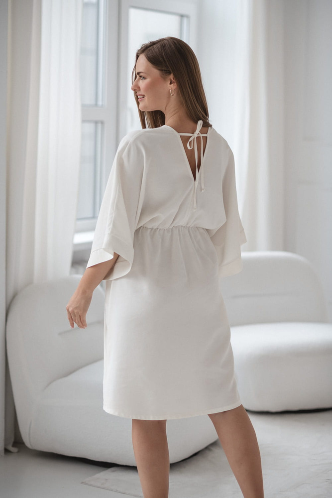 Рокля за бременни и кърмачки Mama Zen Milk&Love, кремава - кимоно с ципове, модал