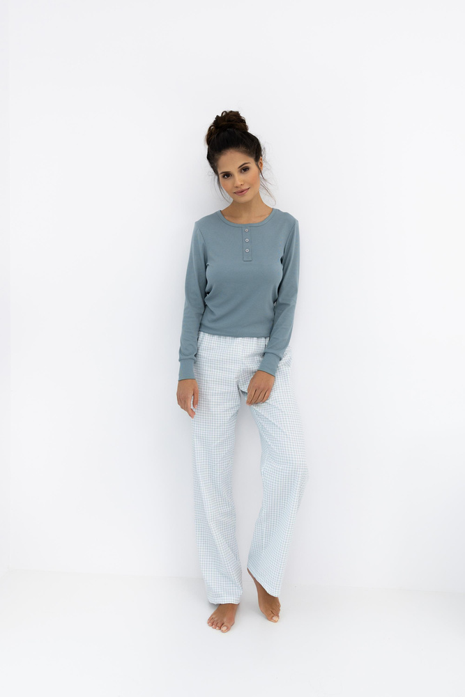 Janelle Sensis - Дамски комплект пижама с дълъг ръкав и карирани панталони