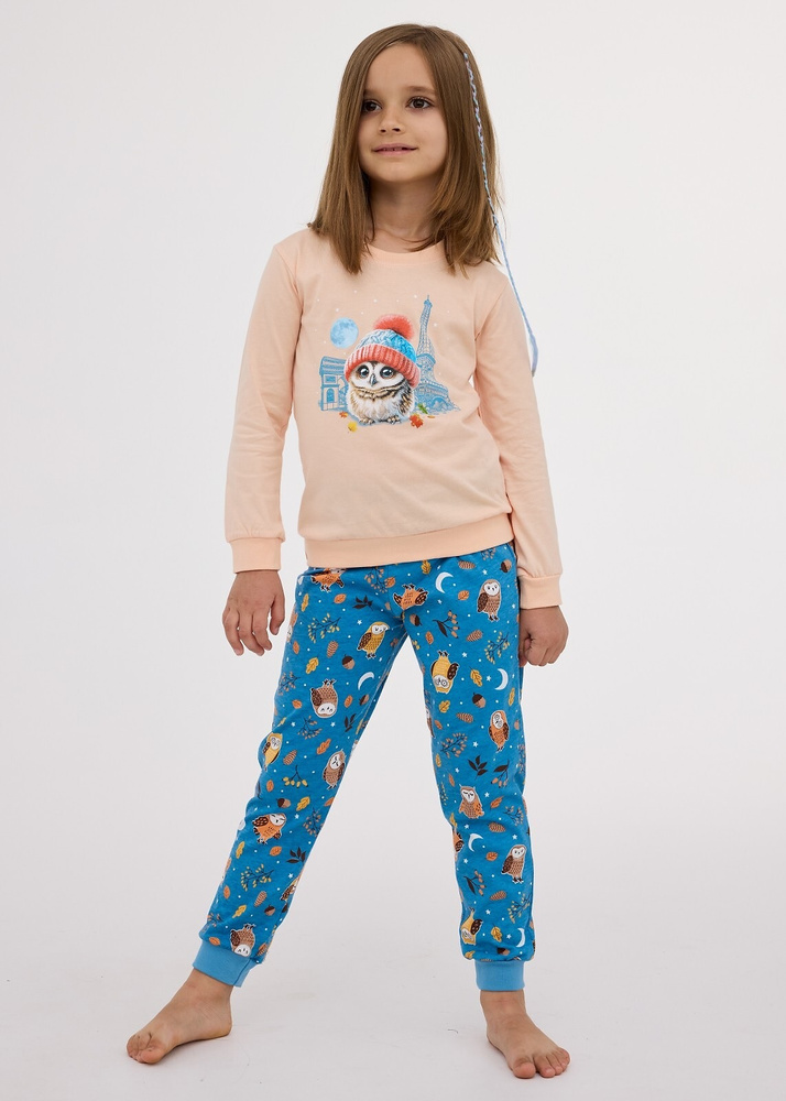 977/188, 978/188 Момичешка пижама Paris – памук, дълъг ръкав, цвят праскова