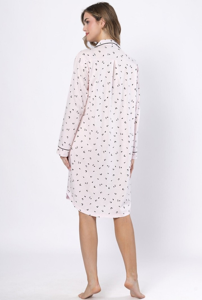 Нощница Laveza Angela 1619 – светло розово, памук, дълги ръкави, закопчаване с копчета
