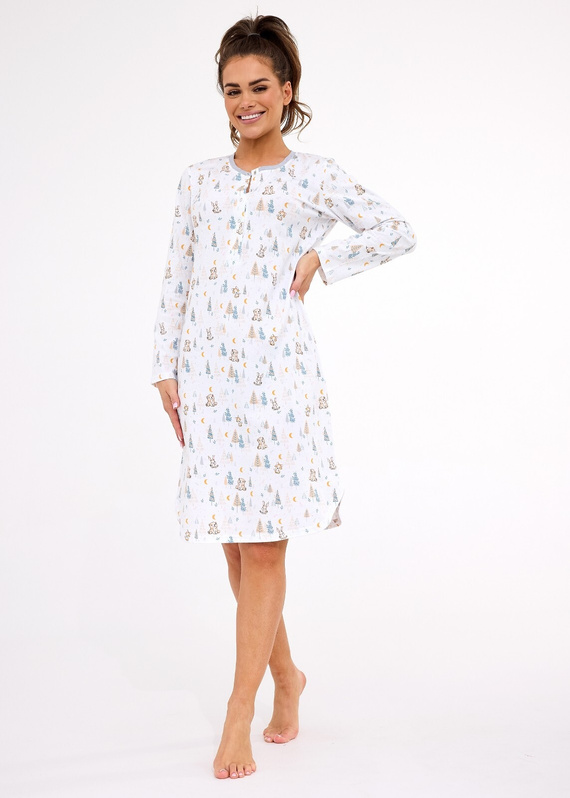 Koszula nocna damska 777/436 Cornette Fox 3 ecru– bawełna, zatrzaski, wygodny krój