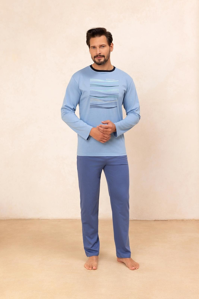 Regina 492 blue – мъжка памучна пижама с дълъг ръкав, класическа кройка