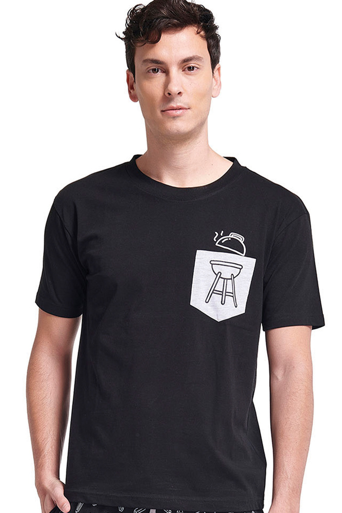 - Удобна мъжка пижама Gianna с тениска и шорти . Лека кройка, щампа отпред, ластичен колан с връв. Перфектен за топлите дни.
