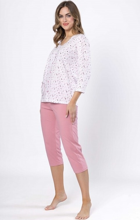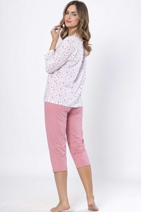 Дамска пижама Добрусия 1636 – розов памук, 3/4 ръкав, закопчаване с копчета