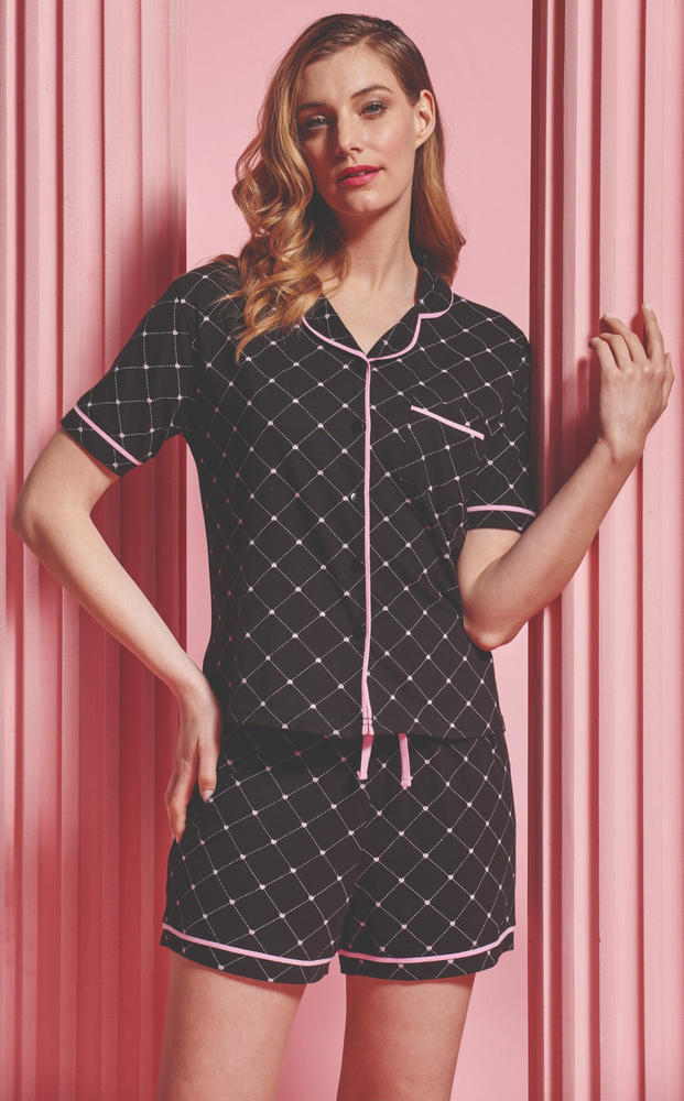 Дамска пижама Coraline Sorbetto, черна - тениска, къси панталонки, 100% памук