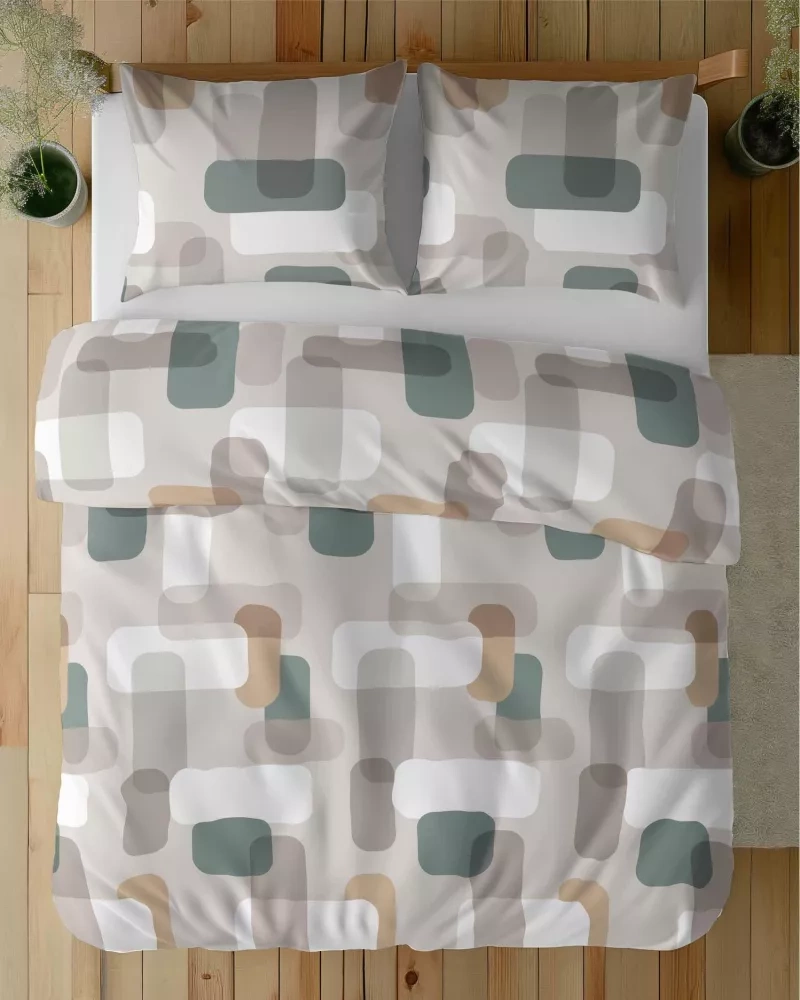 Материалът от 125 g/m² осигурява отлична циркулация на въздуха, като в същото време е издръжлив и приятен на допир. Пликът и калъфките за възглавници се закопчават с цип, което улеснява ежедневната употреба.