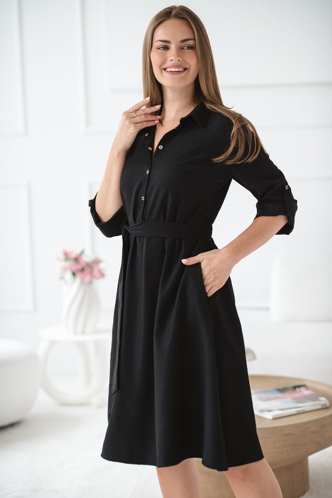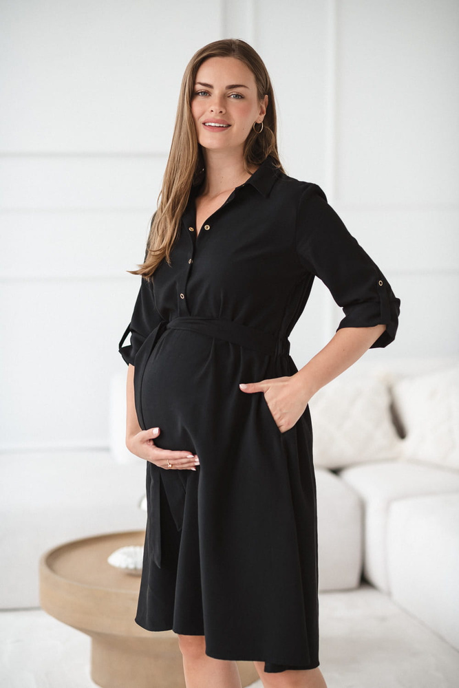 • Черна риза Milk&Love за бременни и кърмачки - мека модална материя, копчета за кърмачки, колан за регулиране на талията, 3/4 ръкав.