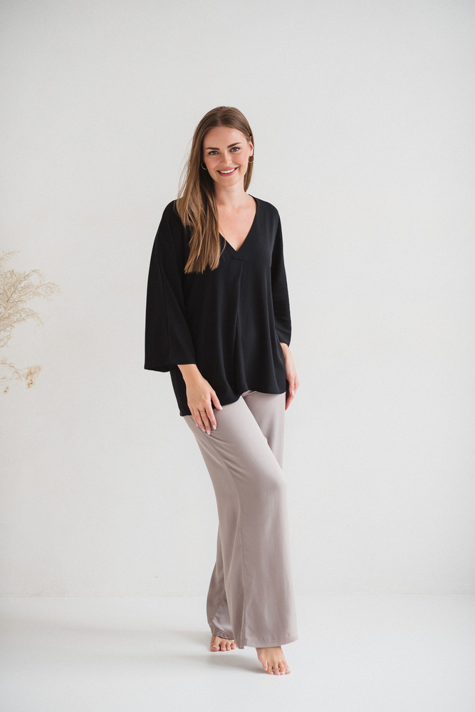 Блуза за бременни и кърмачки Mamafullness Milk&Love, черно – вискоза, 3/4 ръкав, oversize
