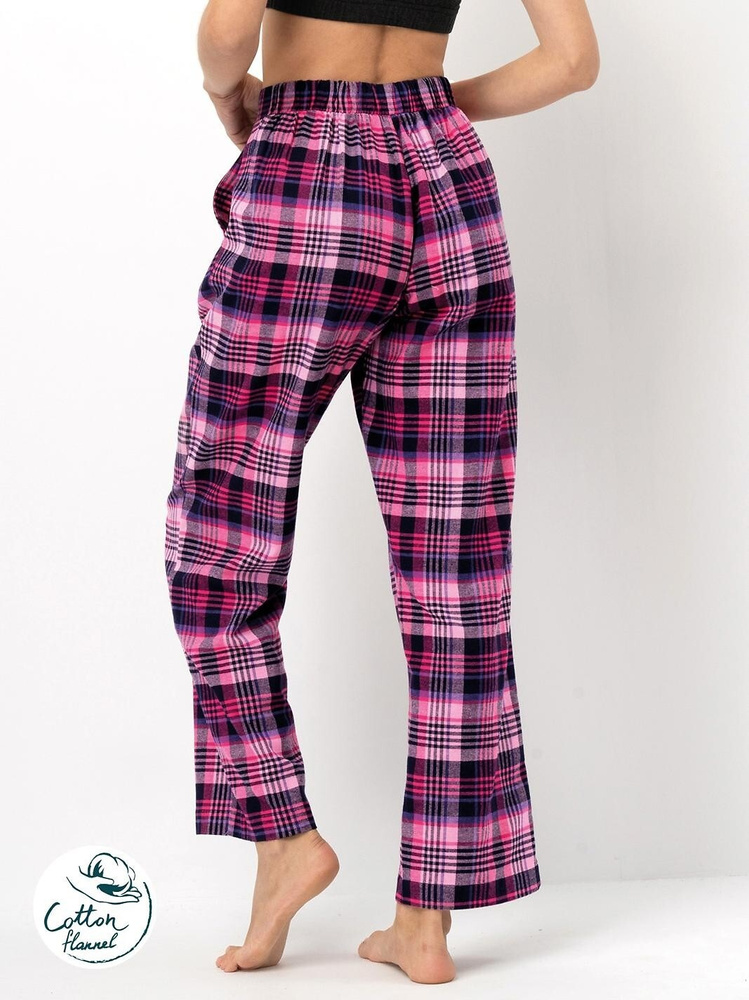 LHE 490 Key дамски пижамен панталон, фуксия - карирана памучна фланела