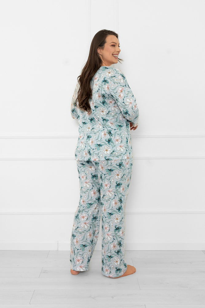 Дамска пижама Sequoia - памучна, с дълъг ръкав и панталон, с флорален десенИталианска мода