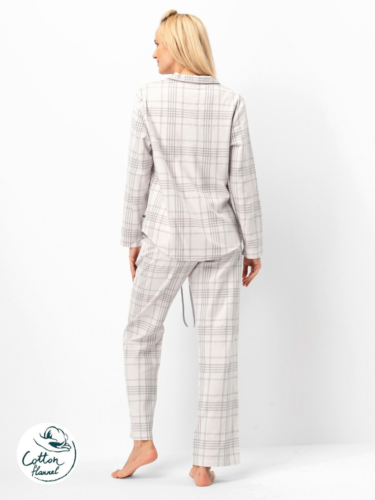 Горната част на комплекта е риза с дълъг ръкав и копчета, което придава на всичко елегантен вид и е изключително практично в ежедневието. Включени са в комплекта дълги панталони със семпла кройка, гарантираща пълна свобода на движение и комфорт по време на сън и почивка у дома.