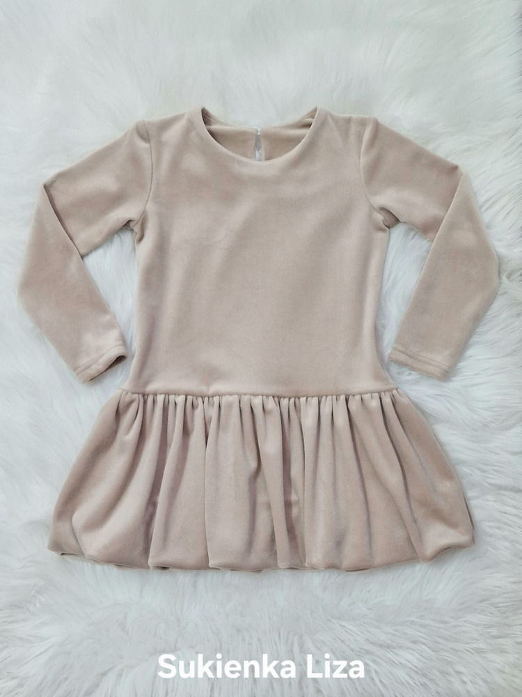 Model zachwyca klasycznym krojem z nowoczesnym akcentem, który sprawia, że sukienka świetnie sprawdzi się zarówno podczas rodzinnych uroczystości, jak i w codziennych stylizacjach. Welur nadaje jej elegancji, a wygodny fason zapewnia pełną swobodę ruchów.
