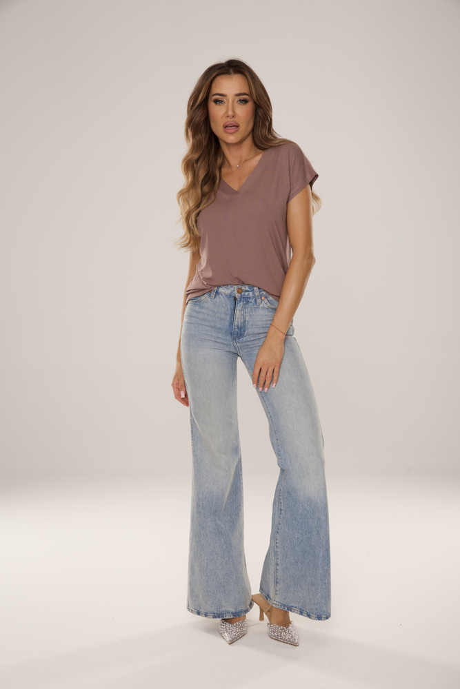 774 Vendy Дамска блуза De Lafense - вискоза, къс ръкав - mocca