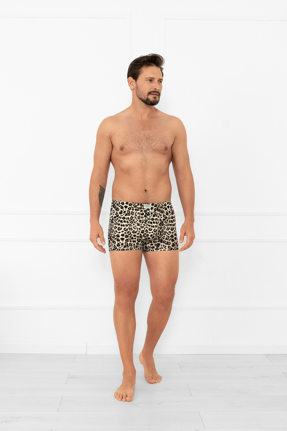 • Стилни мъжки боксерки Kongo Italian Fashion от вискоза. Леопардов принт, плътно прилепнала кройка, еластичен колан в тунел.