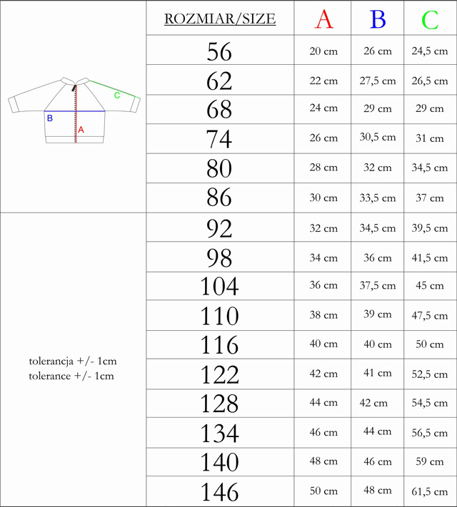 | Размер | Обиколка на гръдния кош | Обиколка на талията |