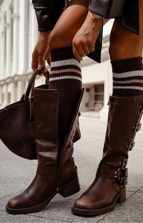 1610-001 Дамски чорапи до коляното Милена, кафяви - на райета, удобни и стилни
