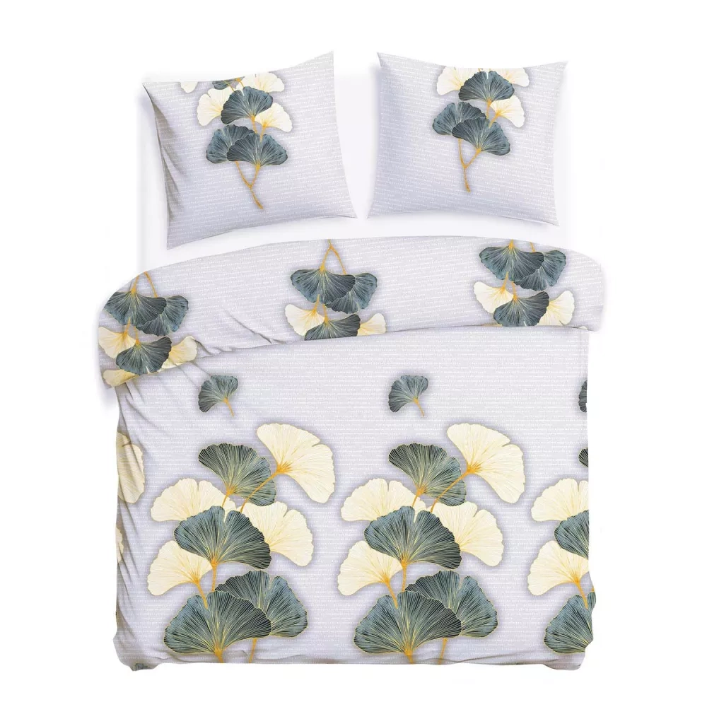 31510/1 Комплект спално бельо от фланел Flanellove Darymex сиво-зелени листа от гинко – комплект, 100% памук, топъл и мек