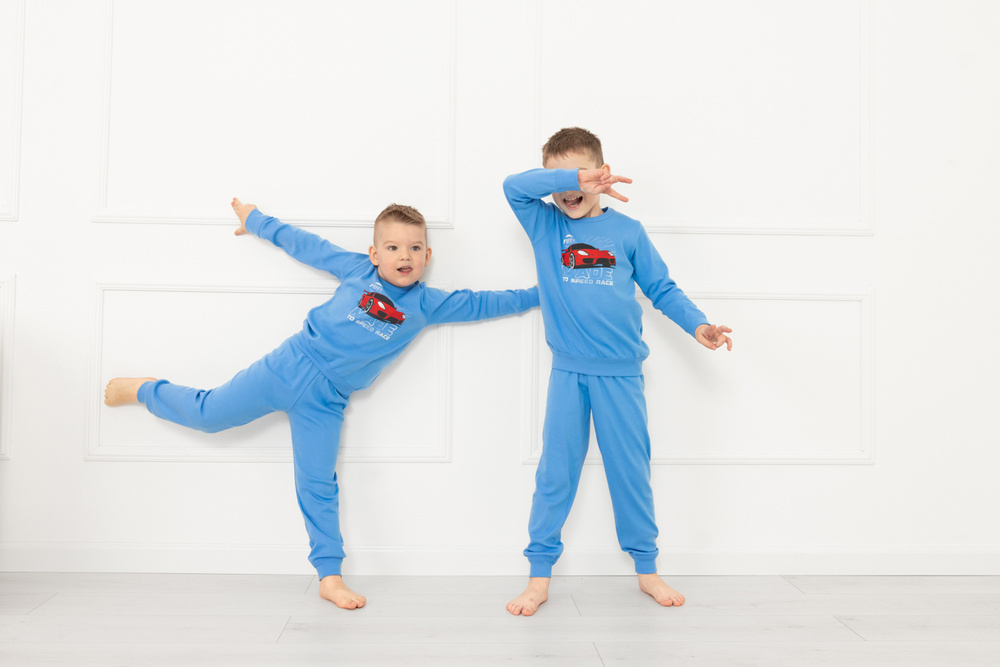 Свободната кройка, съчетана с оребрени маншети, долната част на горнището и крачолите на панталоните, означава, че пижамата приляга перфектно и не се размества, докато спите или играете. Това е практичен и стилен избор, който съчетава комфорт и детска енергия.
