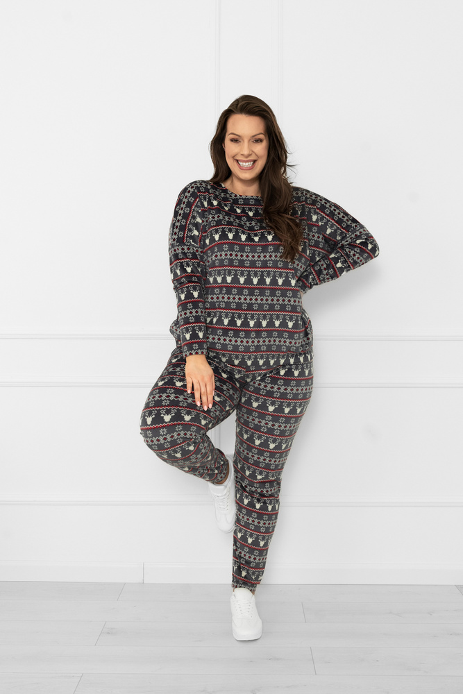 Дамски комплект Navara - поларен комплект с коледен десен с елени Италианска мода - графит