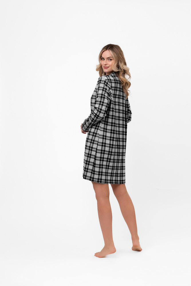 • Елегантна и удобна дамска нощница с дълъг ръкав Klara, изработена от 100% естествен памук. Класическата кройка с яка и копчета по цялата дължина и вечната карирана шарка правят този модел идеален избор за по-хладните вечери.