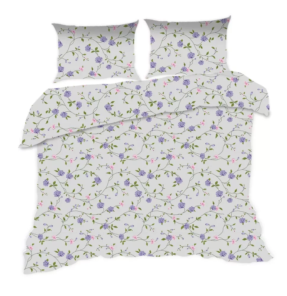 1668N Класически E24 Комплект спално бельо от памук с цветя Karo, сиво и лилаво – 100% памук, издръжлив, цветен, комплект от 2 части