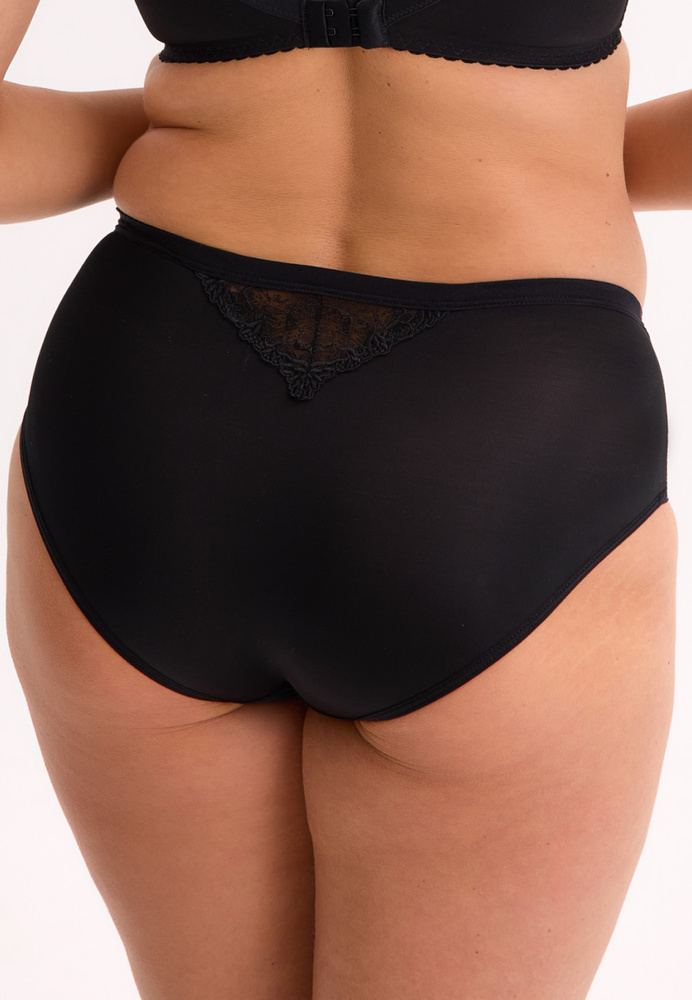 - Черни слипове Gaia Kiara GFP 051. Предна част с бродерия и тюл, задна част от мек микрофибър, памучен клин и панделка на талията.