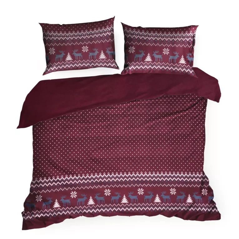 Мат Микрофибър Коледно спално бельо Еврозавеси бордо – декорирано с щампа в скандинавски стил