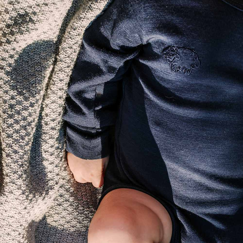 Бебешки боди от мериносова вълна Eevi, тъмносиньо – 100% мериносова вълна, терморегулация
