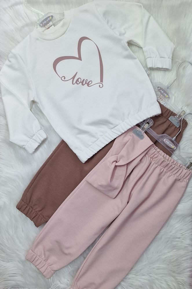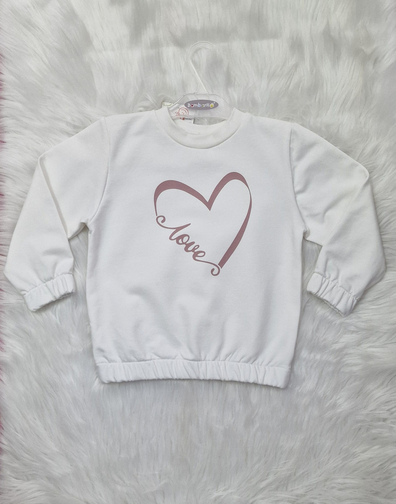 Детски суитшърт Love Heart Bambarillo в екрю - плат за суитшърти, памук с еластан