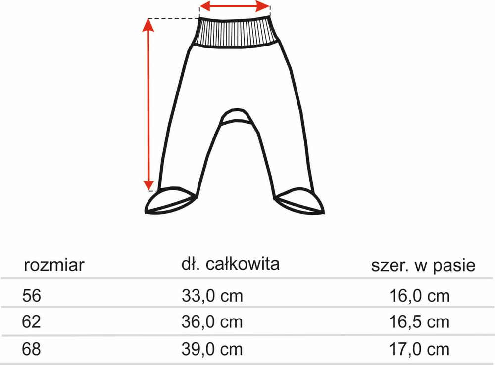 Szeroki, elastyczny pas w talii zapewnia wygodę i nie uciska brzuszka, a zabudowane stópki chronią nóżki przed wychłodzeniem – bez potrzeby zakładania dodatkowych skarpetek. Naturalny materiał pozwala skórze oddychać i nie powoduje podrażnień.