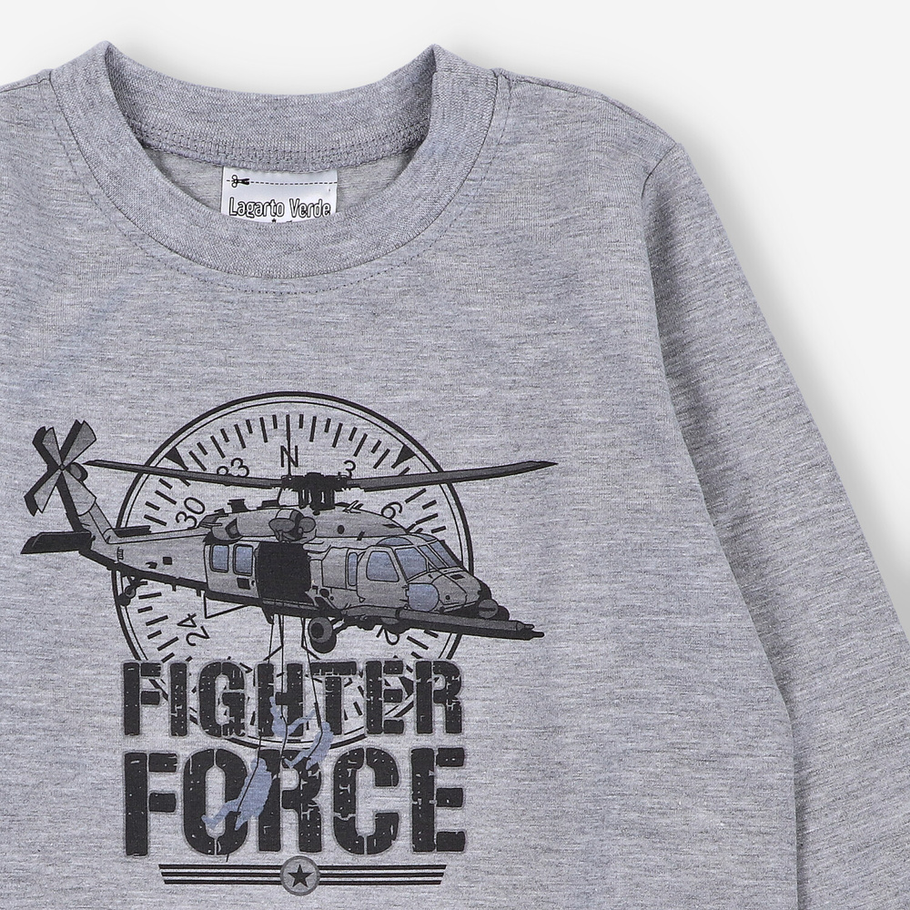 KAR-1018 Блуза с дълъг ръкав Lagarto Verde за момче, сива - памук с еластан, полско производство