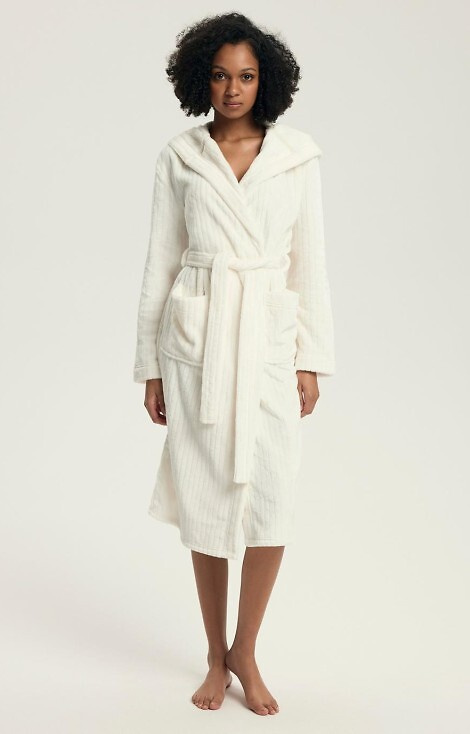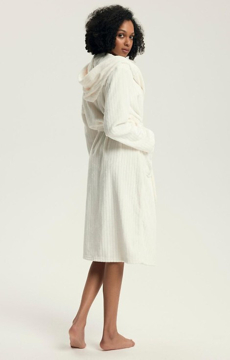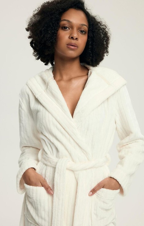 43600 Дамски халат с качулка Dionne Henderson Cream – мек, дълъг, оребрен